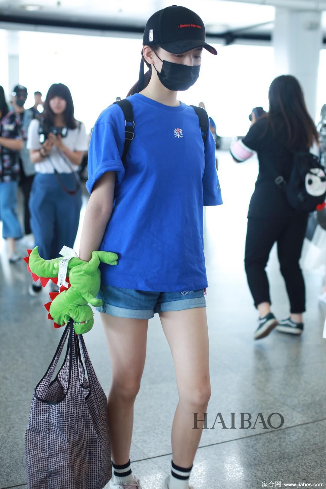 杨超越侧身站立尽显腿部优美线条 荷叶边牛仔短裤细节增添甜美少女感
